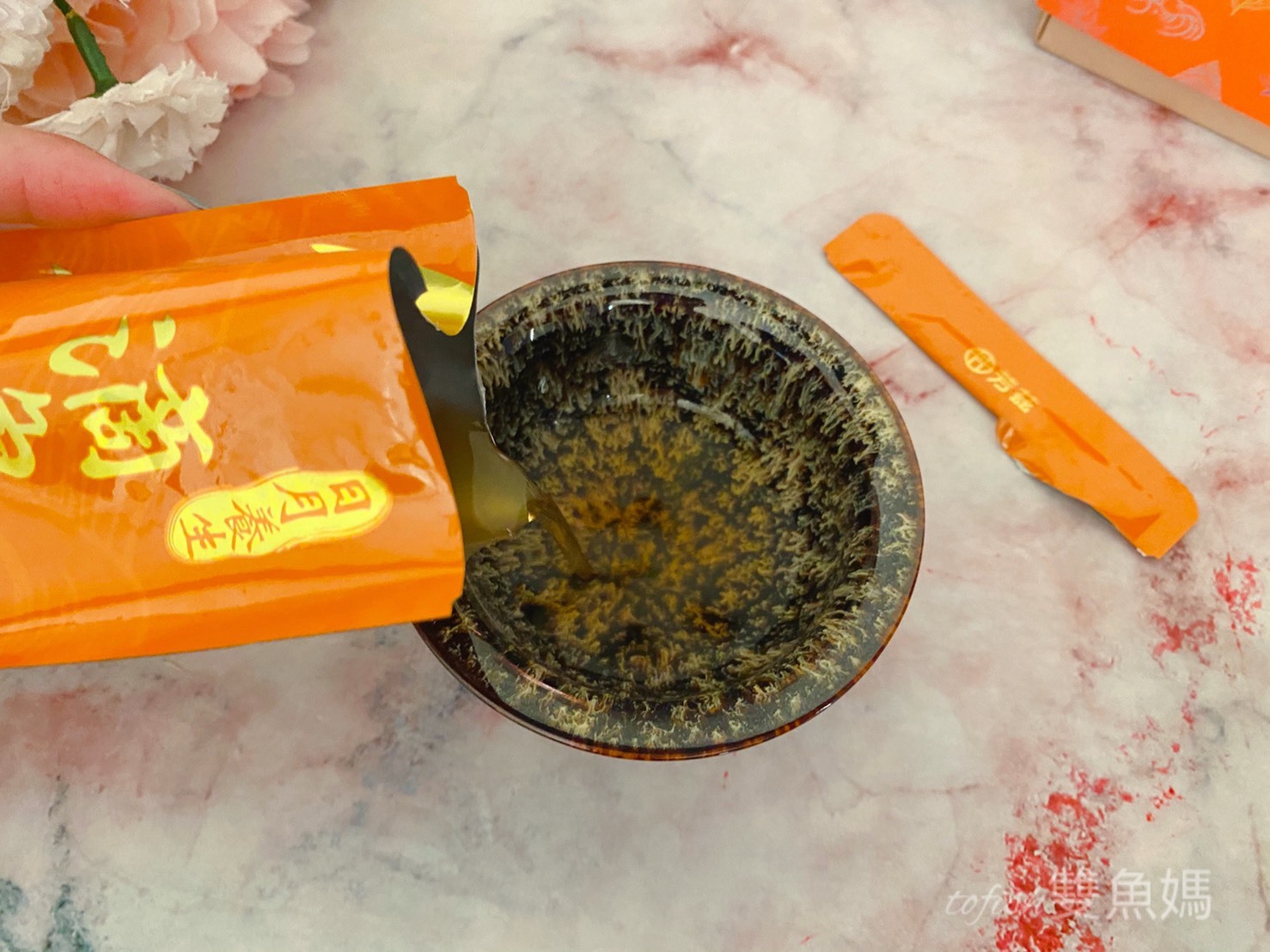 我分享的是禮盒款 6 包 60 ml 滴魚精並附贈「天目釉品茗杯」