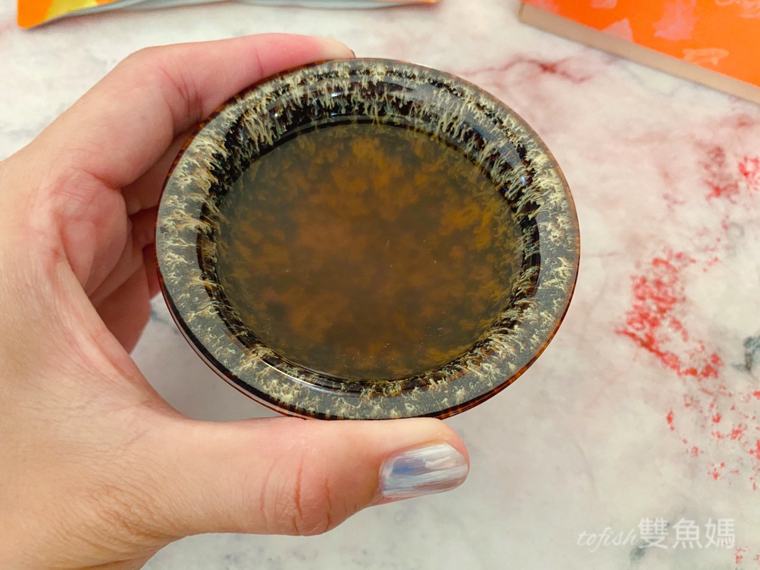 日月養生滴魚精6包裝禮盒贈送的淺杯擁有獨特的名字『天目釉品茗杯』