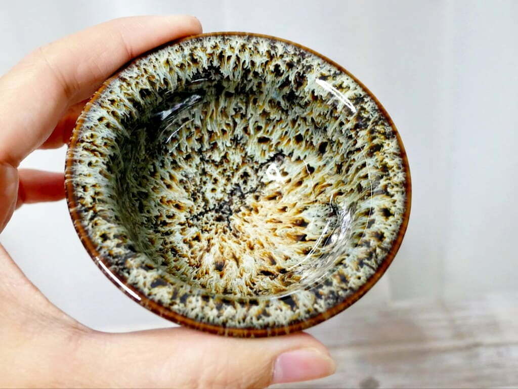 天目釉品茗杯是經過匠人以純手工製作的,每個杯子都長得有些不同, 都是獨一無二的款式唷~