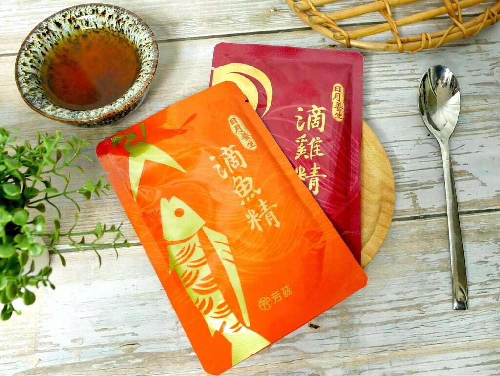 日月養生滴魚精與滴雞精是一樣是由知名波蜜團隊研發生產製造,滴煉前會先將魚隻處理過,再搭配獨家濾油技術,使營養升級無負擔,喝起來相當溫潤順口,而且不會感到油膩!