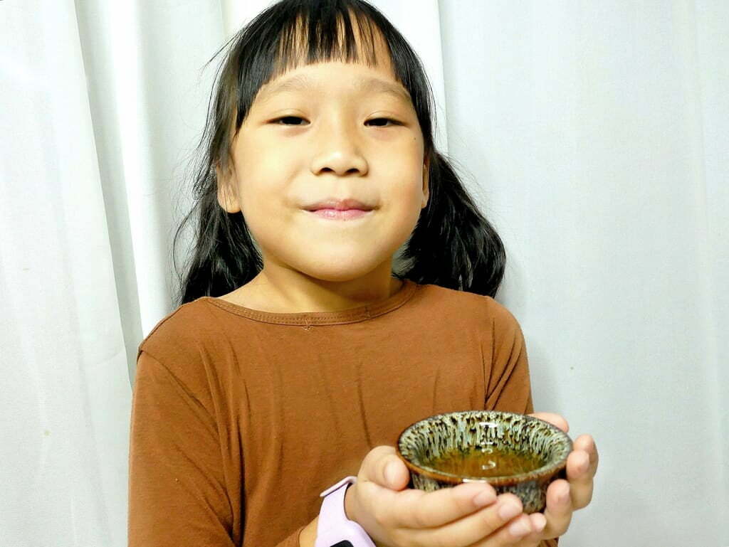 另外還有一個高質感的天目釉品茗杯,一包滴雞精的量,倒入品茗杯裡剛剛好,想補充營養不用再另外找其他杯子裝,是個相當貼心的組合~