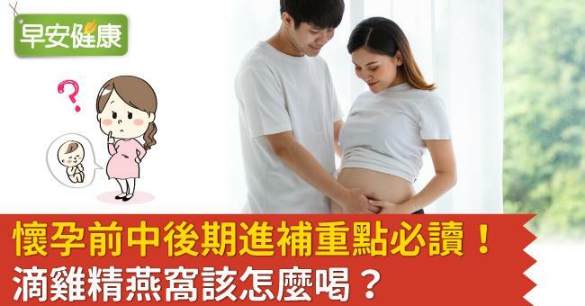 依照「衛生福利部國民健康署」建議備孕期間,為了維持健康,每餐飲食建議要有蛋白質,從有計畫懷孕開始,就可以開始進行葉酸補充。懷孕初期(1-3個月)需要更多元的營養,加上每天需額外多攝取10公克的蛋白質(哺乳期時可以增加到15公克),才能好好調理身體。而滴雞精擁有優質蛋白質,所以是很多孕婦都會選擇滴雞精來補養。