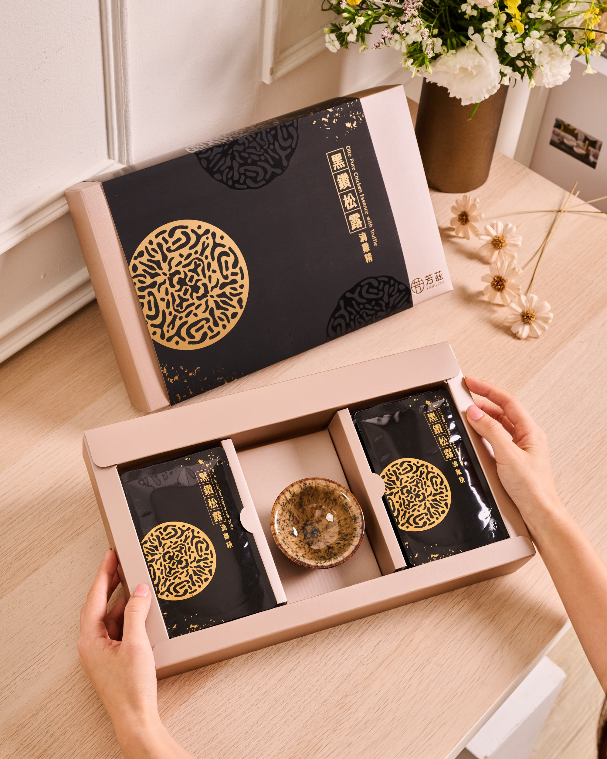 畢竟不是每個人都會處理烹調這些昂貴又費工的食材,大家更期待收到能立即享用的珍饈美饌!因此芳茲「黑松露滴雞精」禮盒去年過年期間首度問世後,迅速風靡送禮圈,這款融合黑松露珍稀輕奢、西式高雅魅力,以及芳茲滴雞精清甜好口感的獨特作品,就是讓人送得出手、收得開心的完美好禮啊!