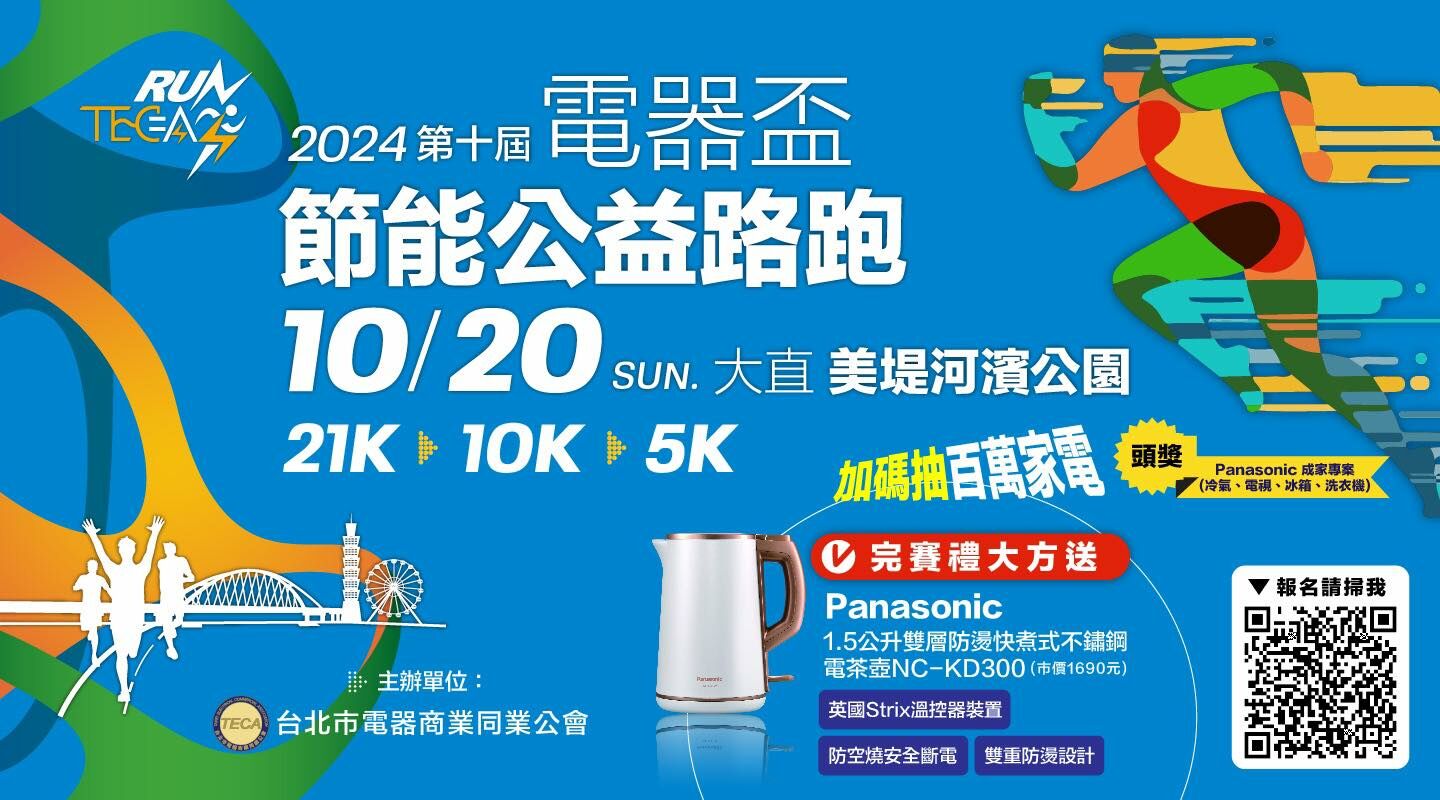 由台北市電器公會主辦,每年有數千名跑者參與、電器業界年度規模最大的路跑活動「2024第十屆電器盃節能公益路跑」,今年將於10月20日周日6時在台北大直美堤河濱公園為愛開跑,即日起至8月30日報名,完賽就送名牌雙層防燙快煮不鏽鋼電茶壺,還可抽百萬元節能家電,頭獎是冰箱、洗衣機、電視、冷氣的成家專案,是史上CP值最高路跑活動,做愛心公益又有機會中大獎。