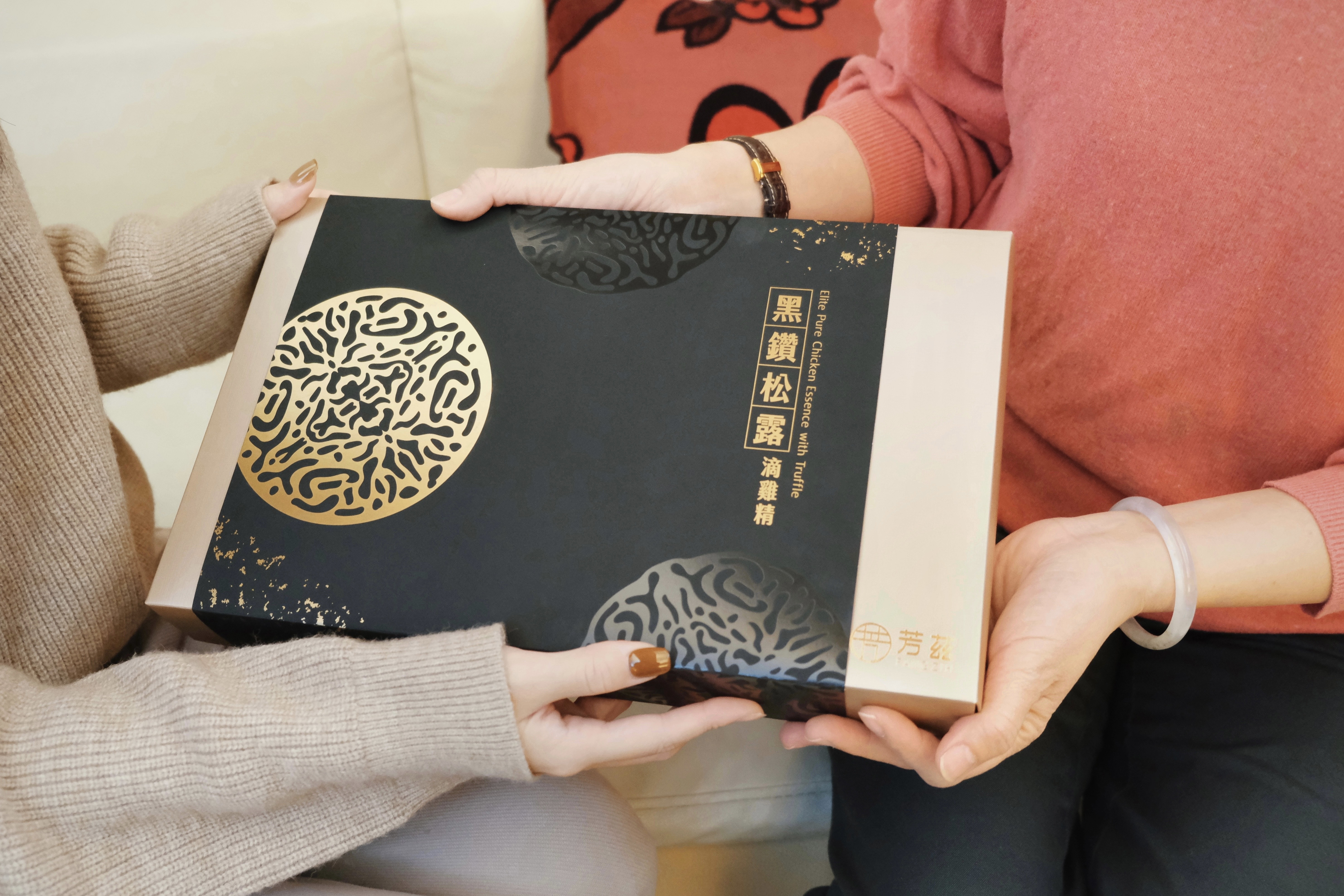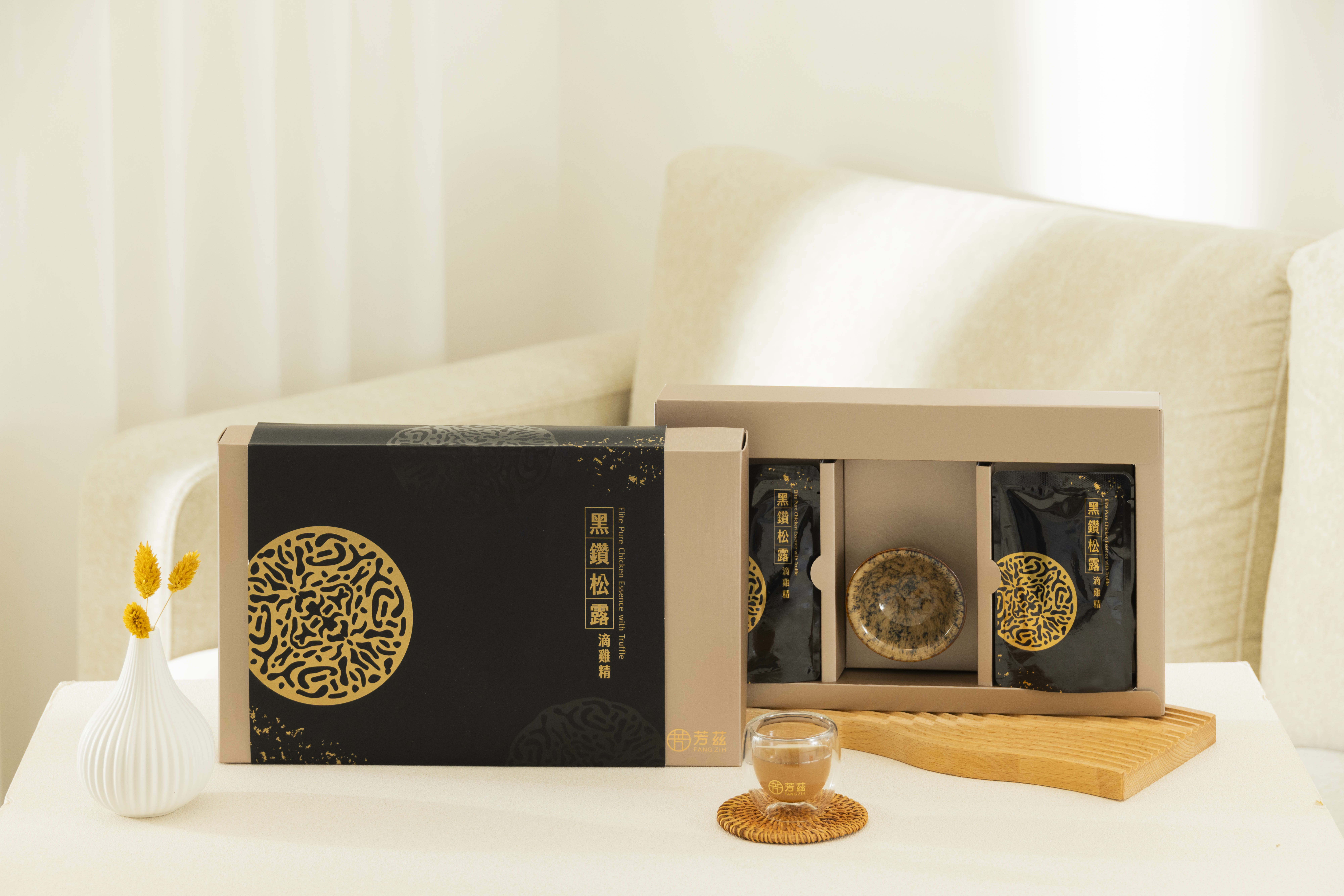 芳茲黑松露滴雞精,融合頂級黑松露的特殊香氣與紅羽土雞滴煉的濃郁精華,是過年送禮面子十足的輕奢選擇。黑松露的高貴風味不僅提升味蕾層次,更象徵尊貴與用心,搭配滴雞精的營養價值,說是過年伴手禮首選也不爲過。無論是送親朋好友,還是表達對長輩的關懷,黑松露滴雞精都能展現滿滿心意,為新春添上一抹高雅與健康的色彩。