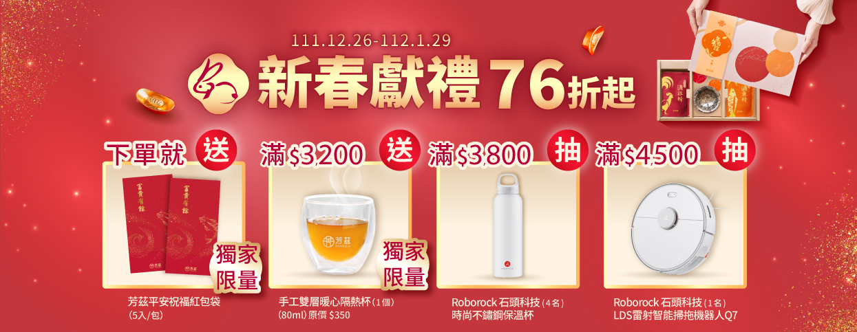 🧧 下單就送限量「芳茲平安祝福紅包袋」(已於112/1/2 中午12點全數贈送完畢)