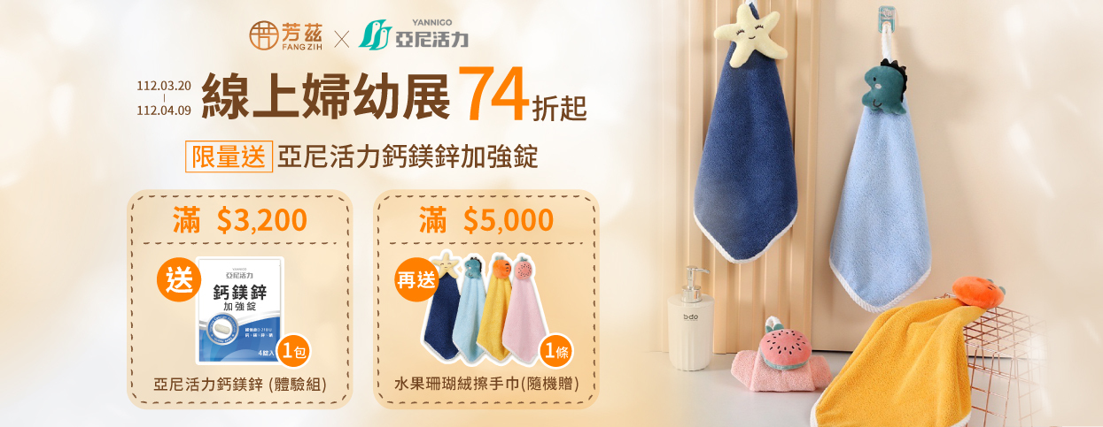 【線上婦幼展74折起】滿 $5,000 限量送水果珊瑚絨擦手巾