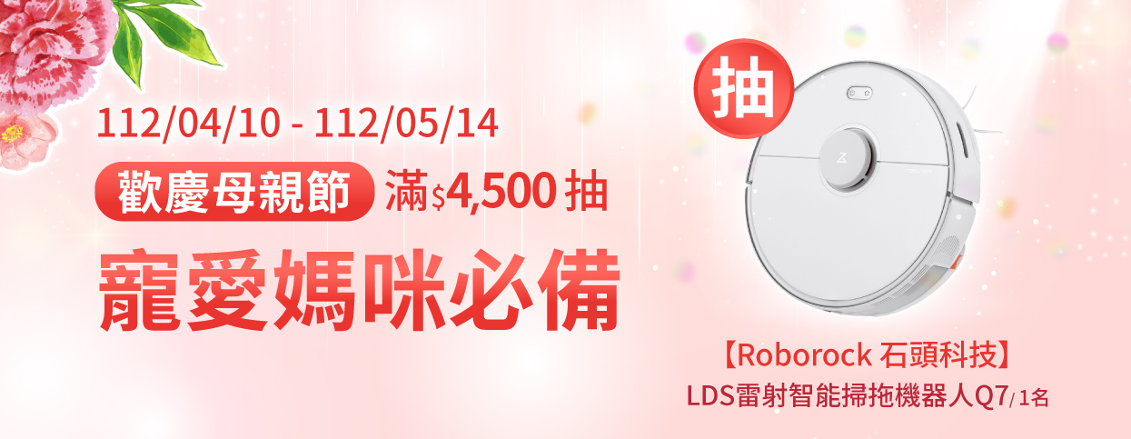 .抽獎名額以母親節檔期計算(112/4/10-5/14),時尚保溫杯共計2名、石頭掃拖機器人共計1名。