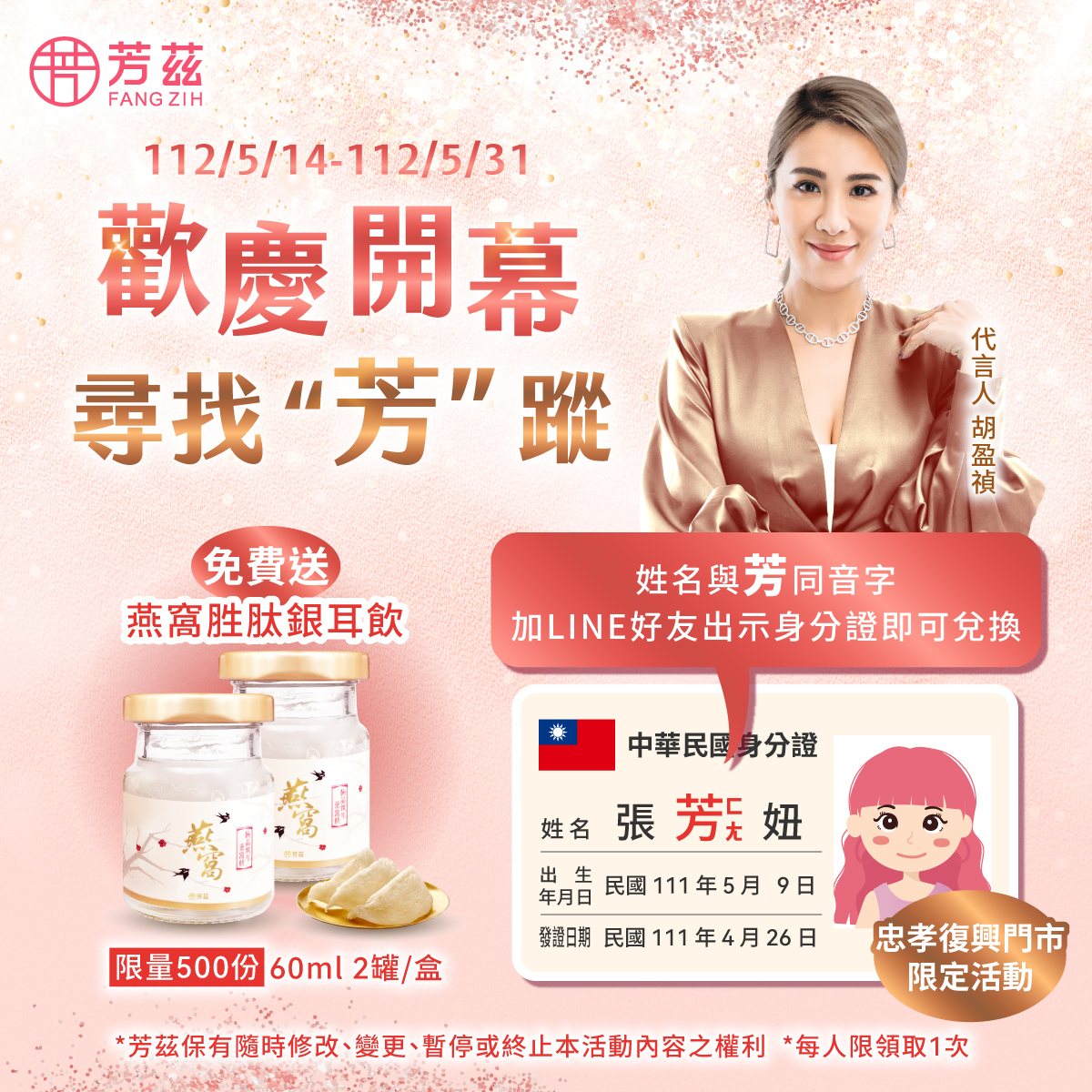 本人憑身分證件至芳茲忠孝復興門市,並加入芳茲LINE@好友