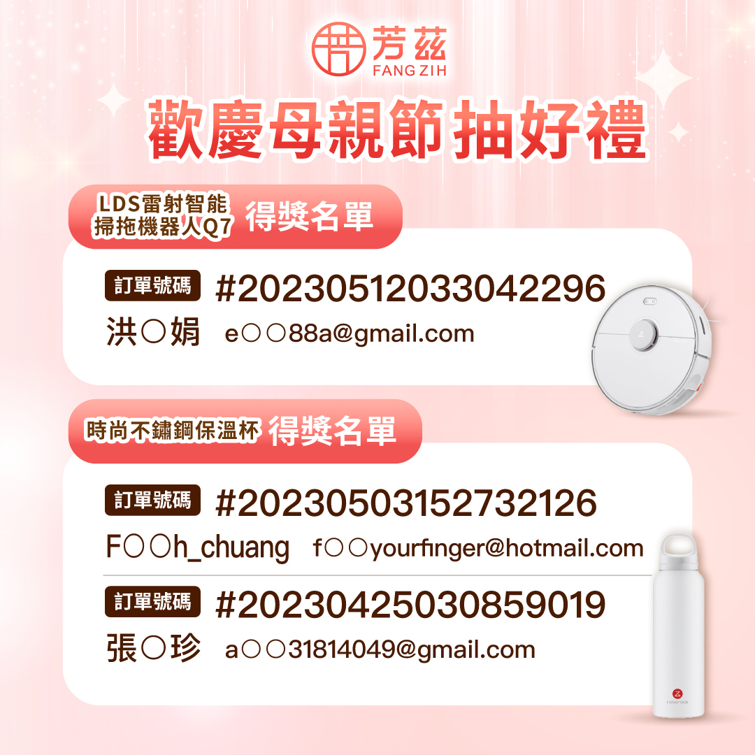 ✅花妞會以電話及E-mail與幸運兒聯繫確認收件資訊