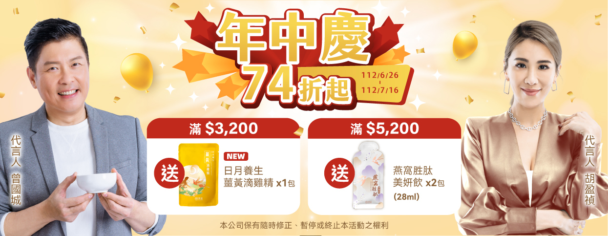 單筆滿$3,200 送日月養生薑黃滴雞精1包(價值 $190)