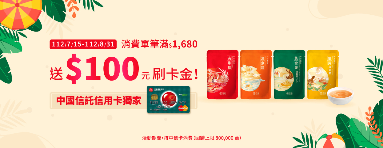 單筆消費滿$1,680就送💰$100刷卡金💰