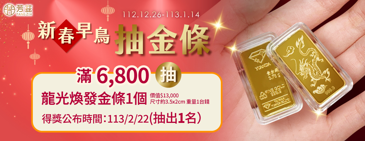 【新春早鳥63折起】滿$6,800抽純金9999金條