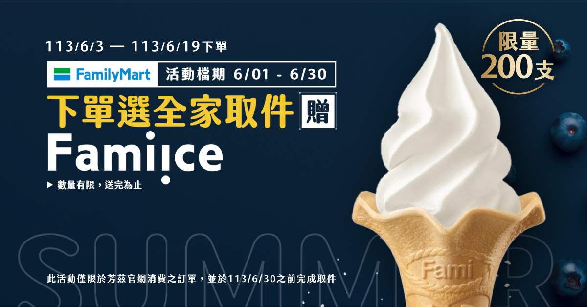 於指定日期 113/6/30 前完成 全家 超商取貨,即可獲得乙支 Fami!ce 霜淇淋之兌換劵序號。
