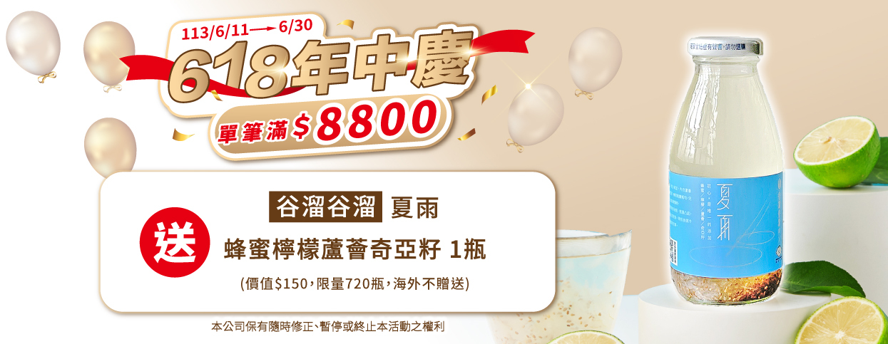 單筆消費滿$8,800送谷溜谷溜夏雨 蜂蜜檸檬蘆薈奇亞籽(價值$150,限量720瓶)