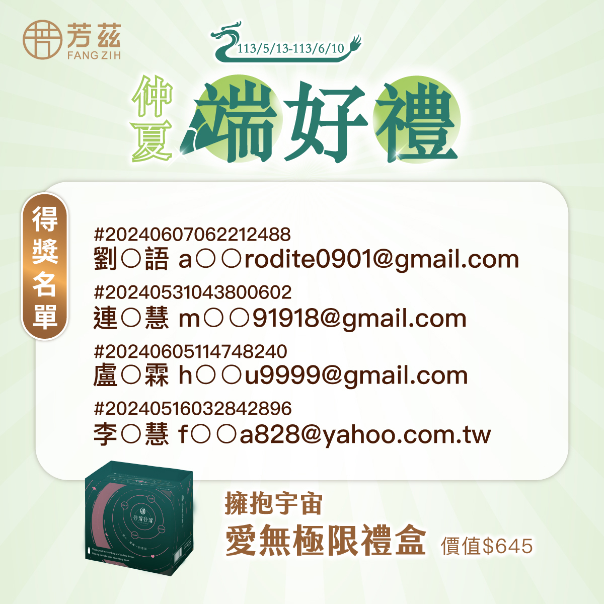 .主辦單位於中獎名單出爐後,,我們將會直接Email及電聯得獎者,若於113/7/15前無法聯繫到訂購人,將視同放棄得獎資格