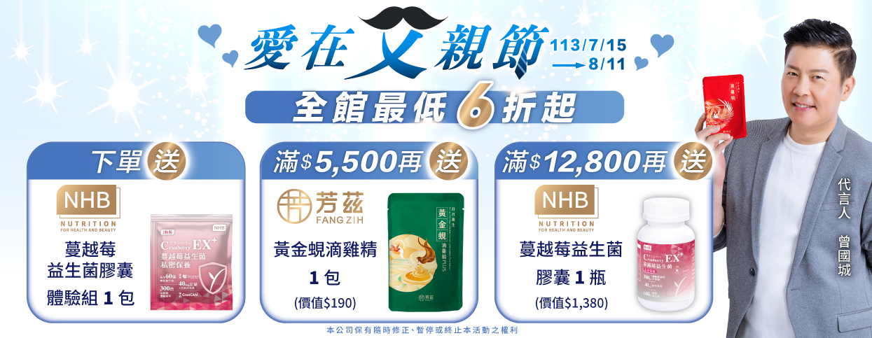 3. 全館滿 $12,800 再送 NHB 蔓越莓益生菌膠囊 1 瓶 (價值 $1,380)