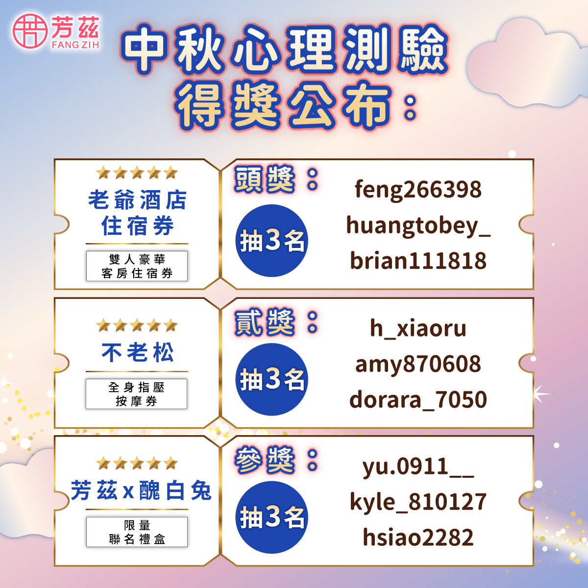 【不老松實體按摩券 1 張】得獎者 (共3名)