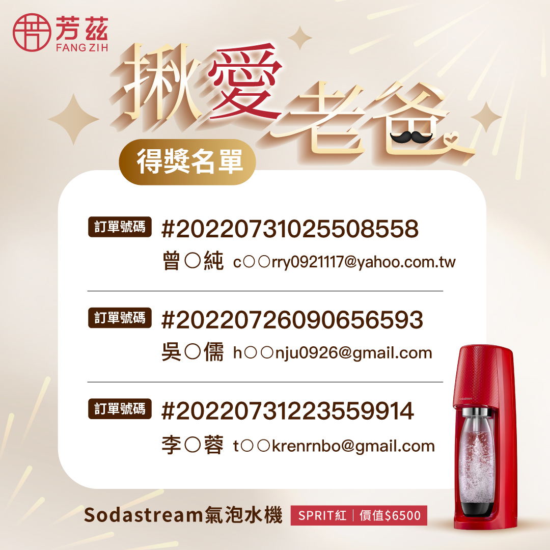 【父親節滿額抽世界NO.1氣泡水機-得獎名單】