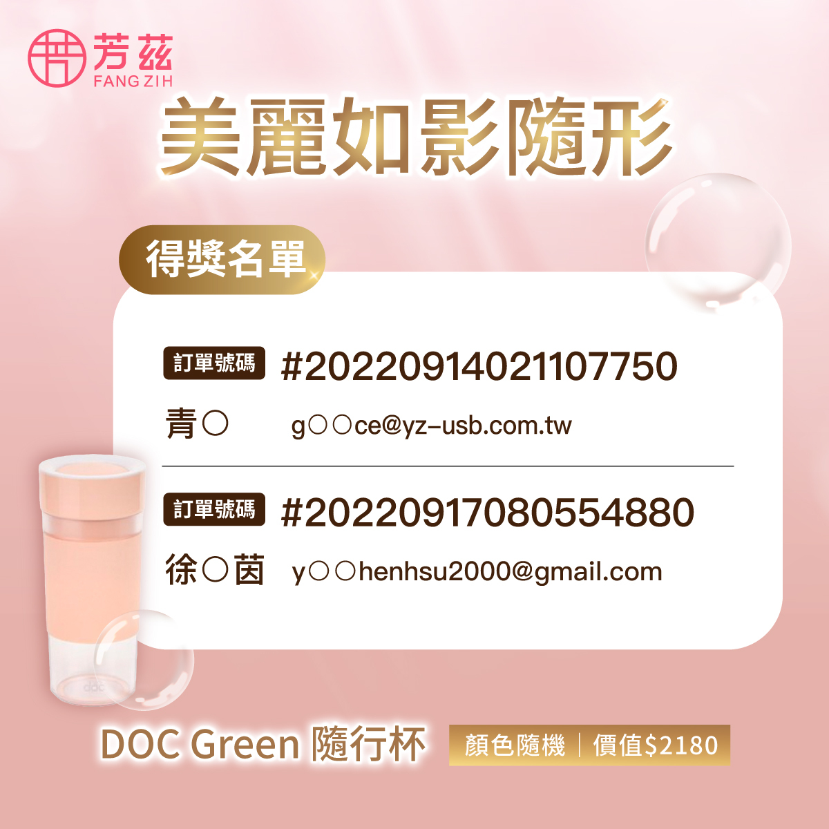 【美麗如影隨形抽 網美必備DOC Green隨行杯-得獎名單】
