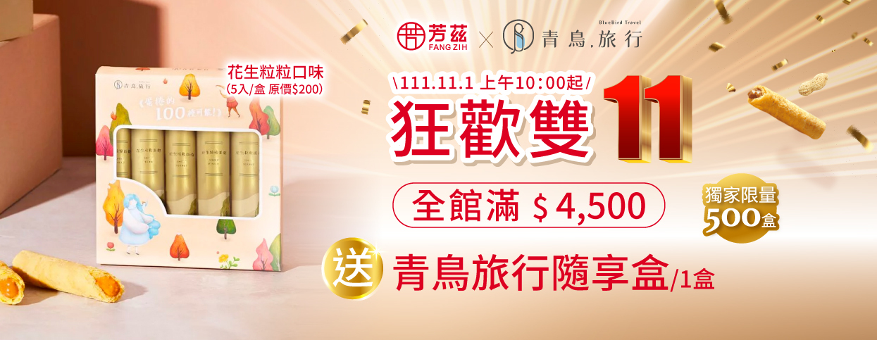 凡於官網下單滿 $4500,就送人氣團購美食青鳥旅行隨享盒 (花生粒粒1盒) 限量500盒,送完為止