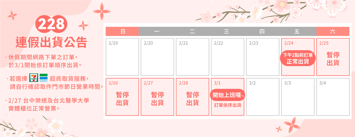 ✅ 112/2/25-112/2/28 暫停出貨服務