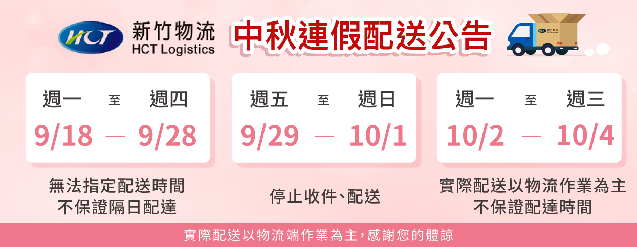 .2023/10/2(一)- 2023/10/4(三)開始配送包裹,但不保證隔日配達,無法指定到貨日。