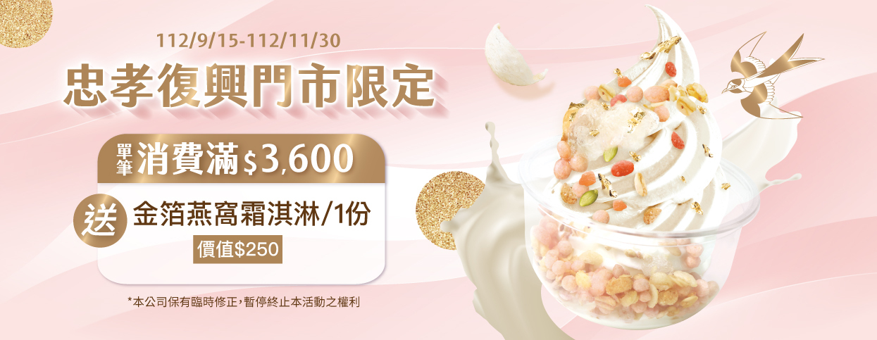 全台首創金箔燕窩霜淇淋,滿額就能免費品嚐 !