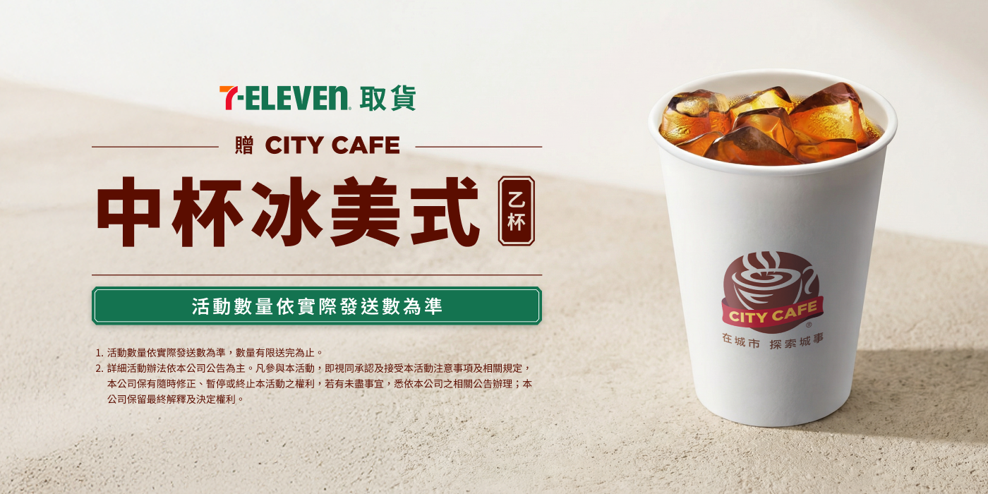 於活動時間內( 2026 年 5 月 1 日起至 2026 年 5 月 31 日止 )完成下訂並在 7-ELEVEN 完成取件者,即享有獲取資格( 中杯冰美式 乙杯 ),贈送對象將隨貨依實際完成下單順序發放,因數量有限送完為止,如未獲贈不另通知。