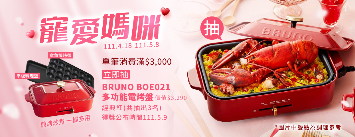 【母親節滿額抽日本人氣BRUNO電烤盤】