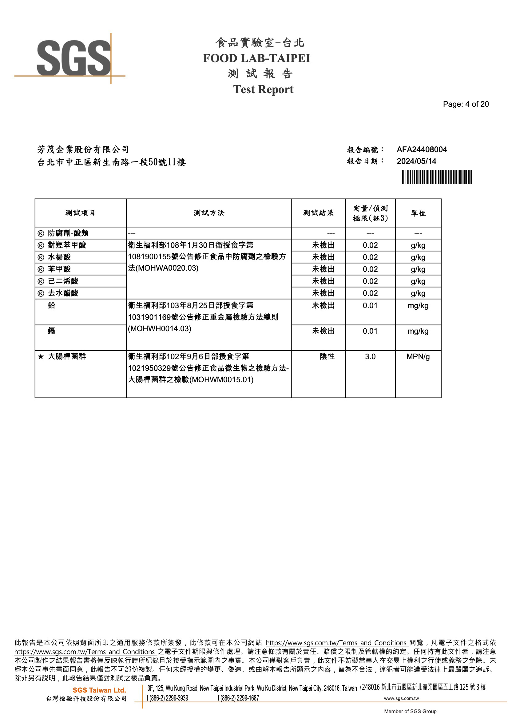 防腐劑、重金屬、大腸桿菌群檢測報告
