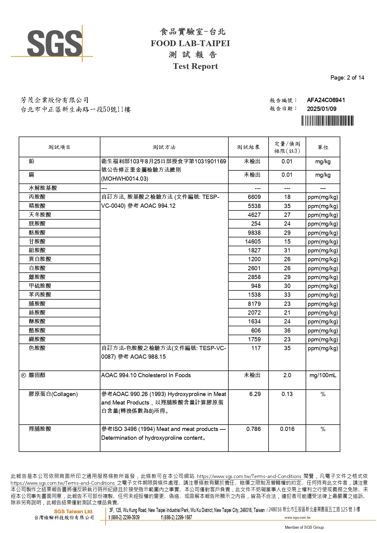 重金屬、膽固醇檢測報告