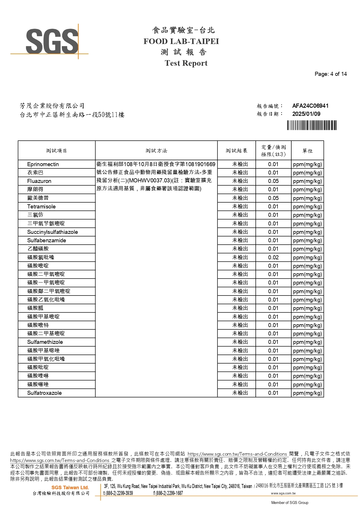 動物用藥檢測報告