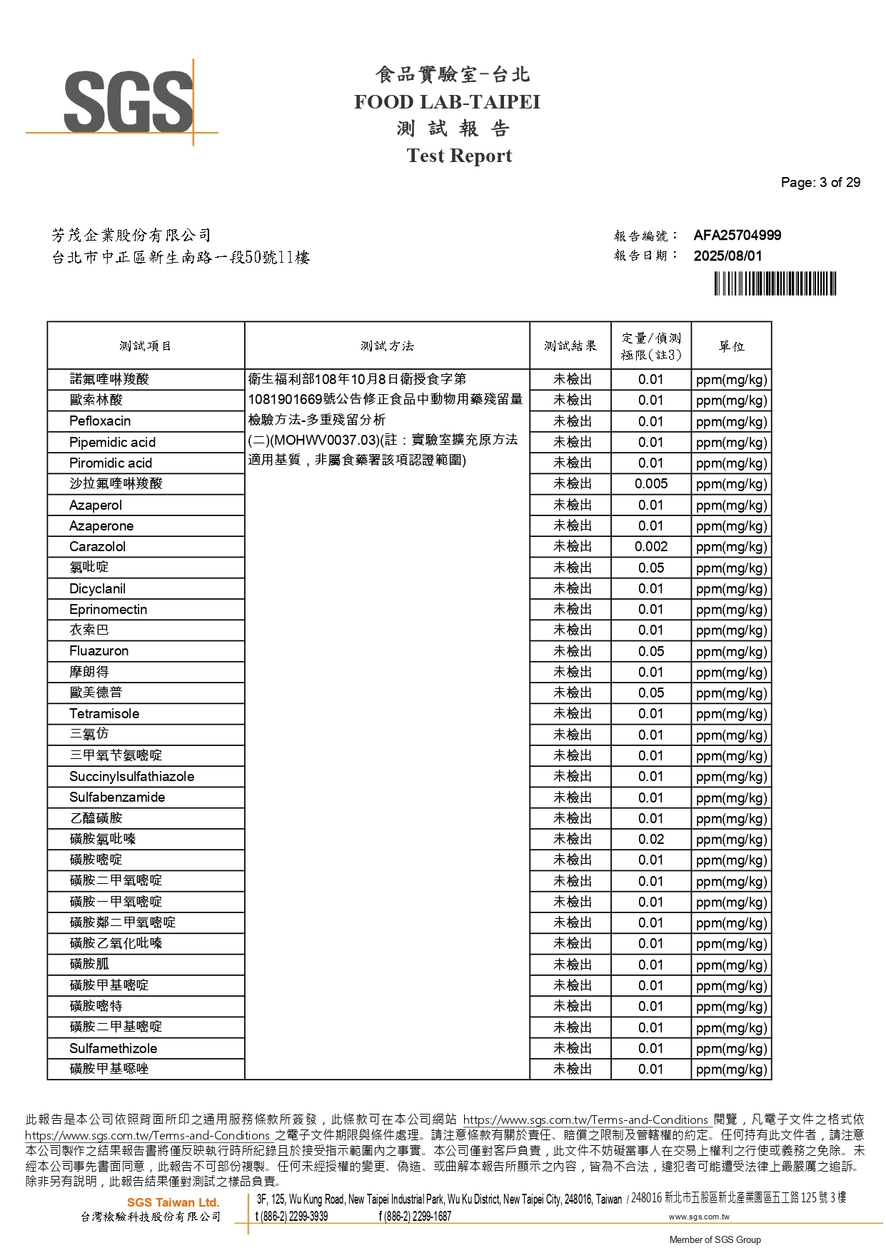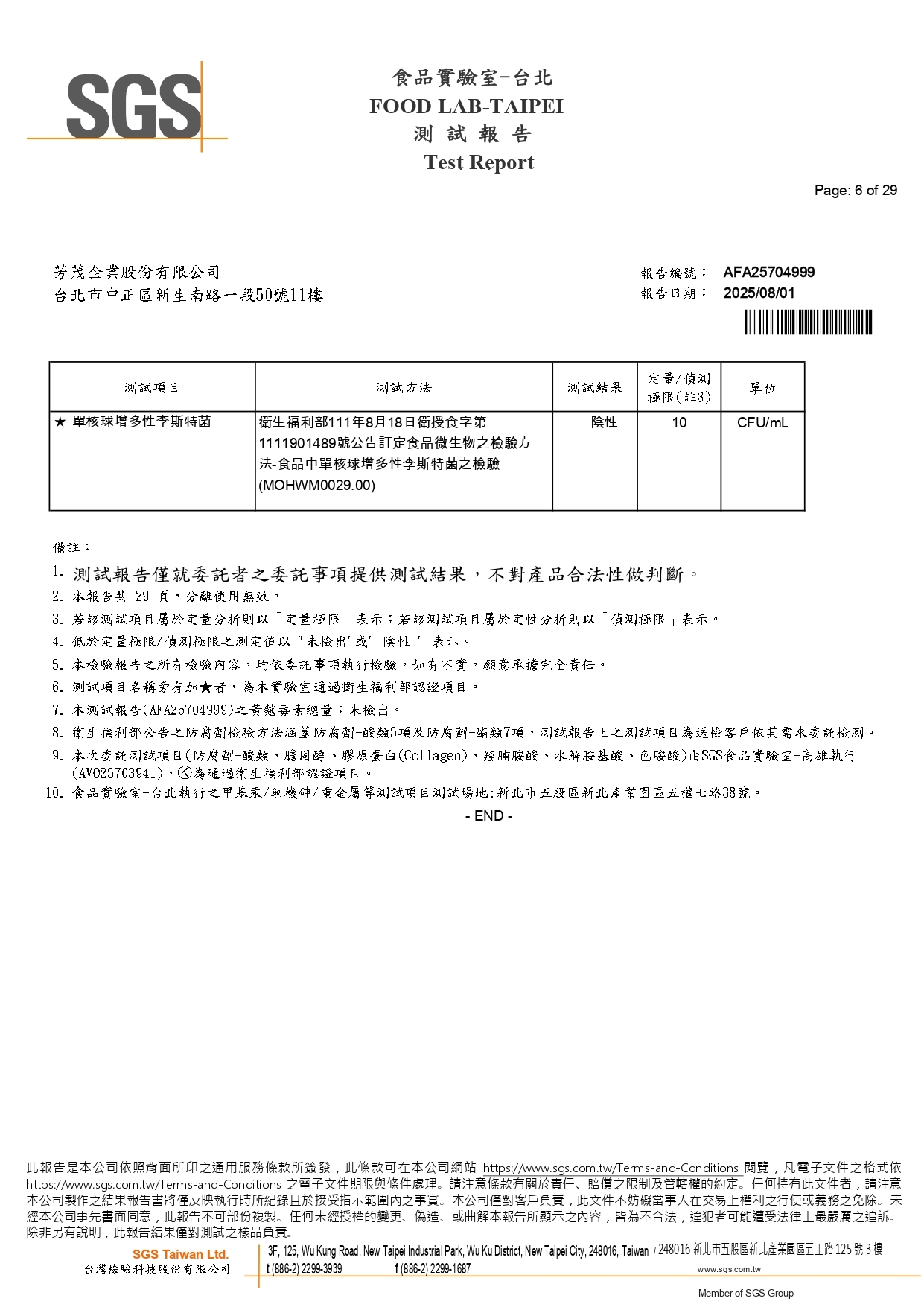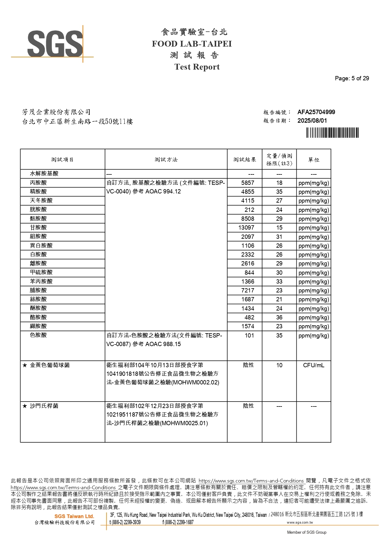 金黃色葡萄球菌、沙門氏桿菌檢測報告