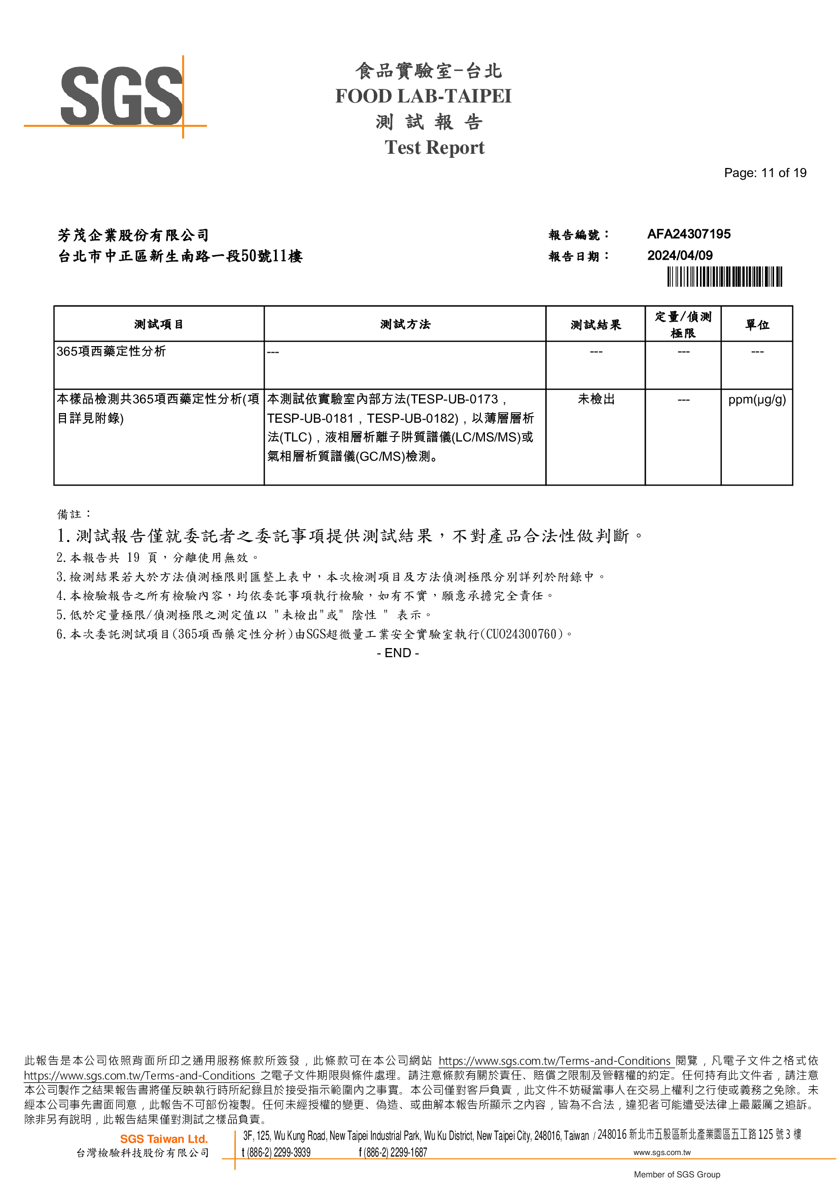 西藥檢測報告