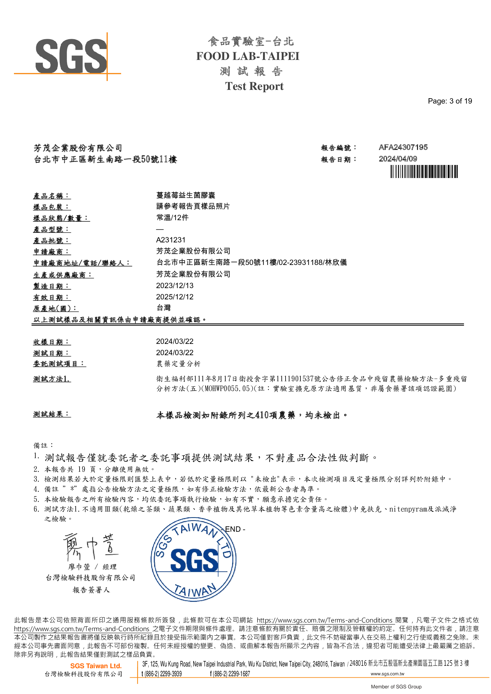 【NHB蔓越莓益生菌膠囊檢測報告】