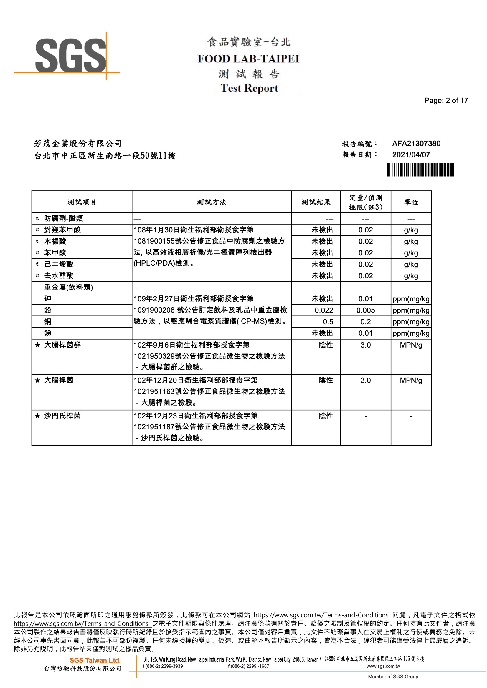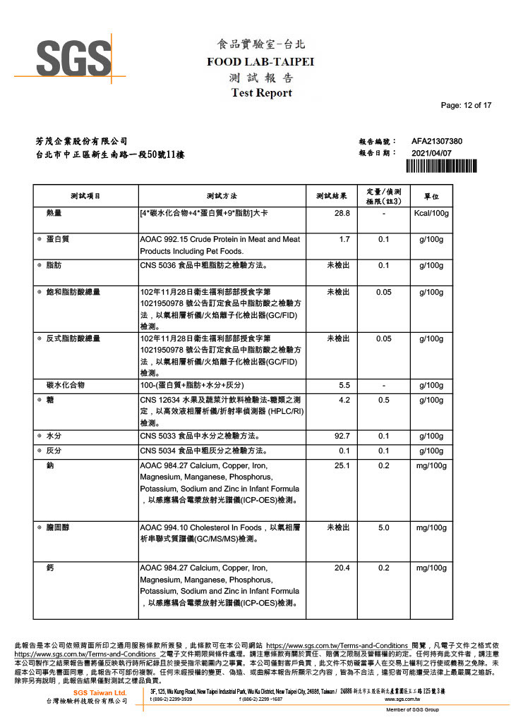 八大營養素.鈉.膽固醇.鈣檢測報告