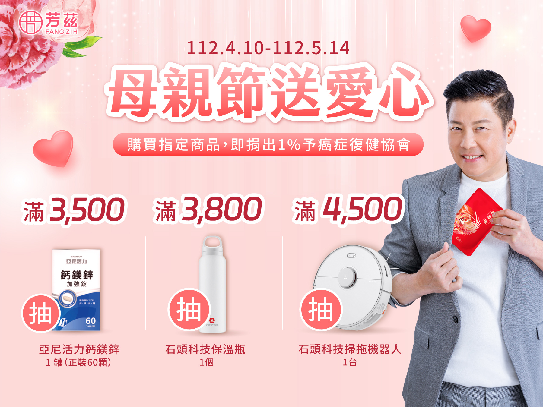 在溫馨的五月除了歡慶母親節,芳茲生技更捎來好消息,一直以來僅透過網路電商與顧客互動的芳茲生技,在5/9選擇逆勢展店,於台北市東區正式開立首間實體芳茲忠孝復興門市,希望透過面對面的近距離接觸,能更深入了解顧客的想法並提供需求,而芳茲生技也相當關心癌症逐年年輕化的議題,因此也貼心的叮嚀民眾應更加注重自身健康的狀況,恰逢母親節活動檔期,芳茲生技宣布與「癌症復健協會」合作公益捐款,將捐出在活動期間指定商品獲得的總收益1%,為抗癌路上的國人們盡一份心力,讓溫馨的母親節充滿愛與意義。