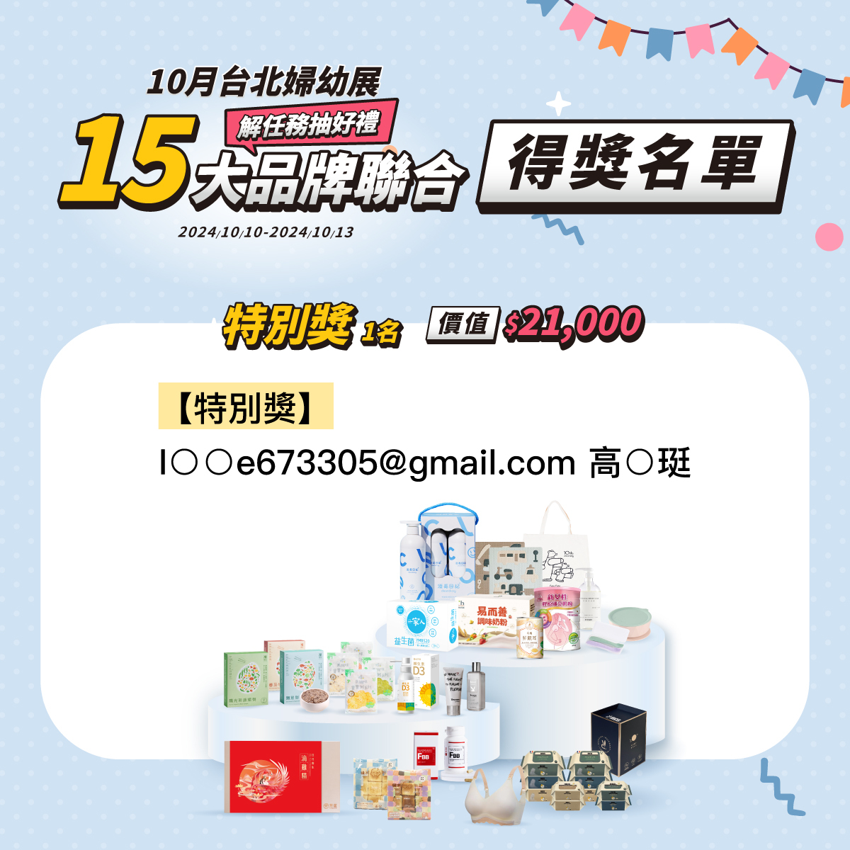 獲得所有合作品牌指定產品 (共15份,價值$21,000)