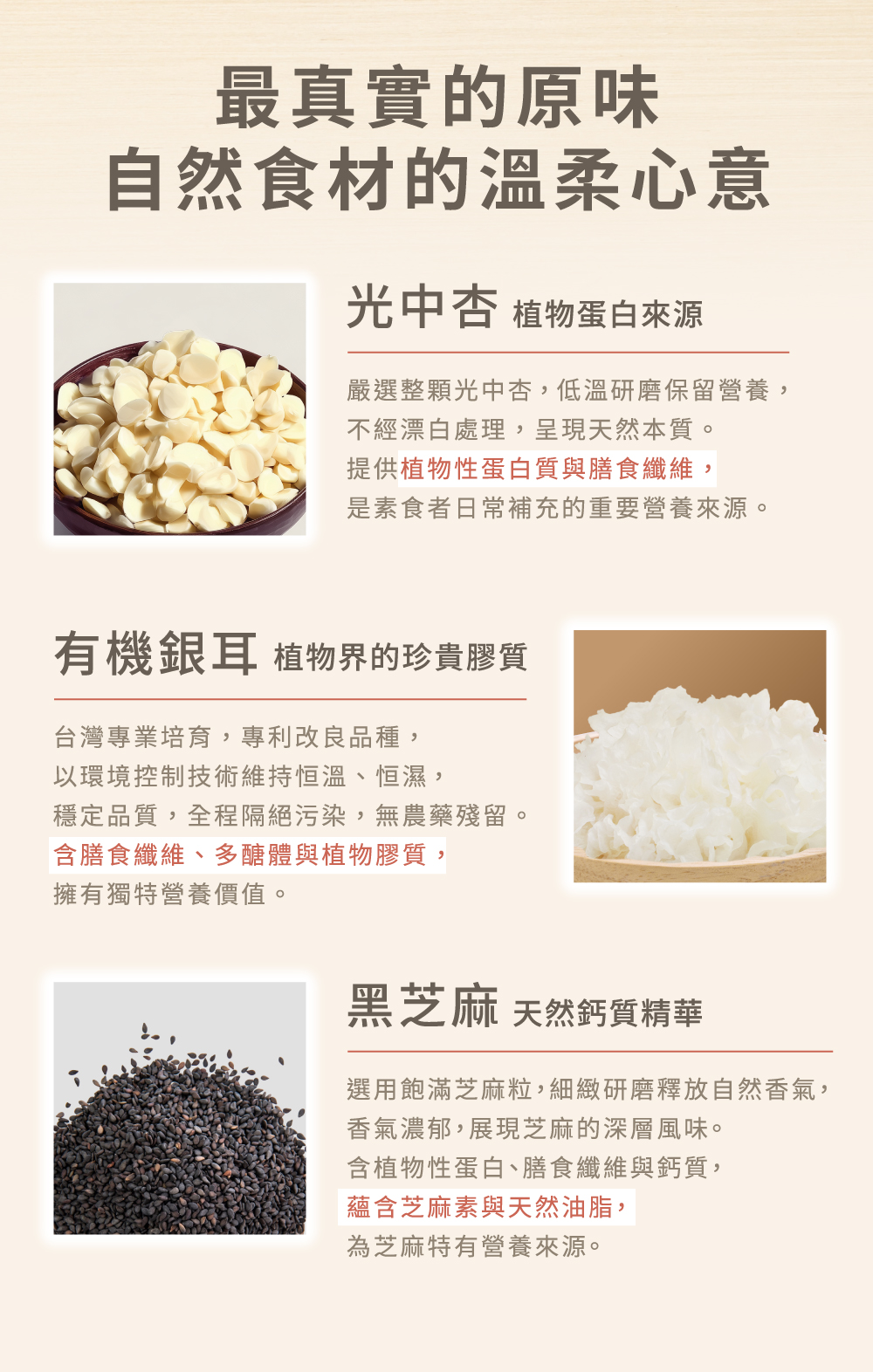 .嚴選光中杏、台灣有機雪耳,香濃純粹口感滑順
