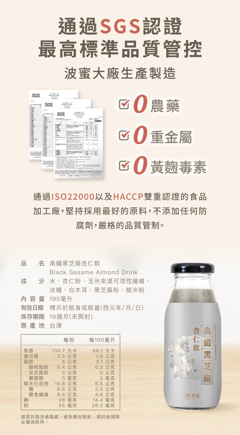 高纖黑芝麻杏仁飲 禮盒款5瓶/盒