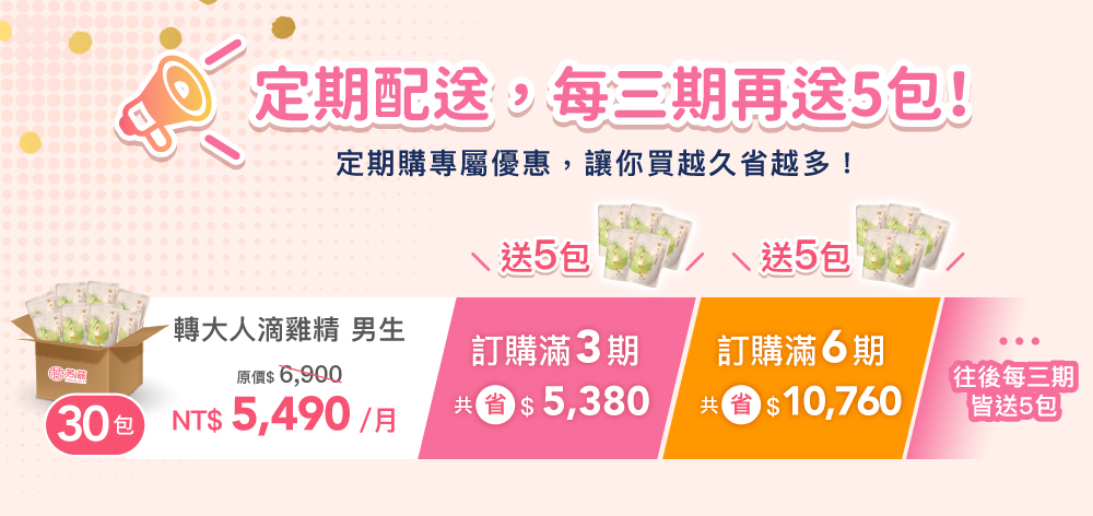 · 每三期贈送 "5包轉大人滴雞精-男生"