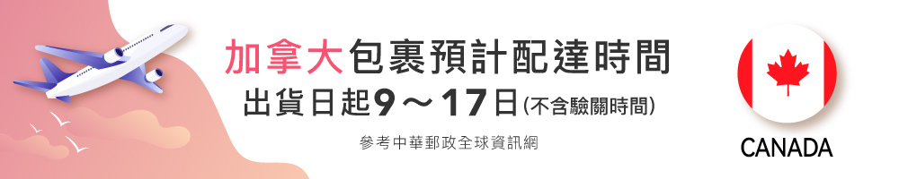 .配送資訊:加拿大地區出貨後約 9–17 日送達,實際到貨時間依加拿大當地物流為準。