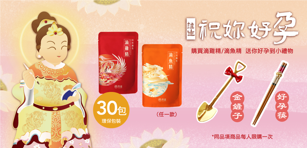 日月養生滴雞精/滴魚精環保包裝 30 包+好孕金鏟子 或 好孕筷