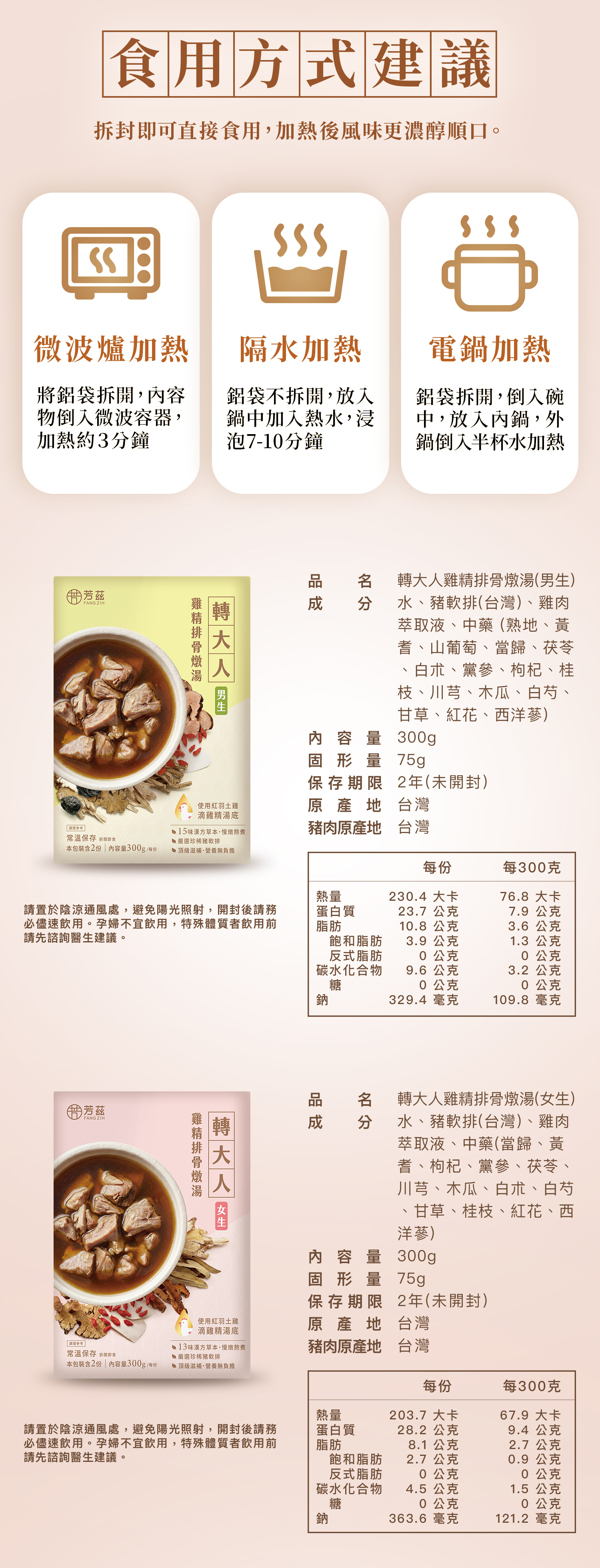 .男生15味漢方、女生13味漢方調理,增添西洋蔘提振精神