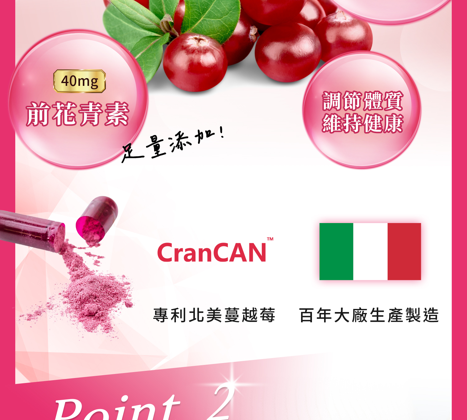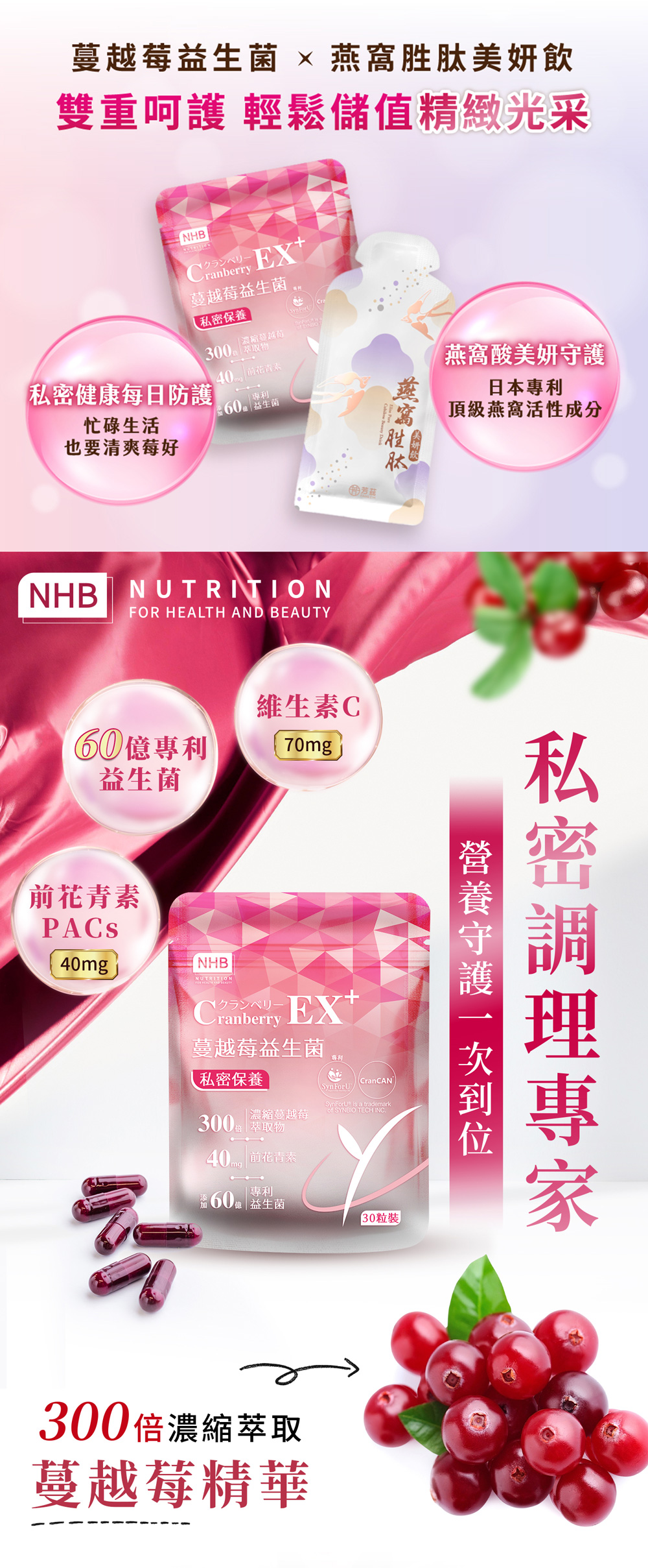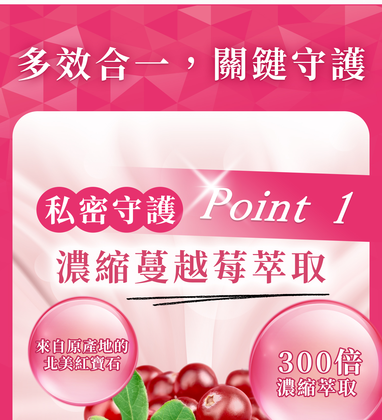 .300倍蔓越莓濃縮萃取,前花青素40mg足量呵護